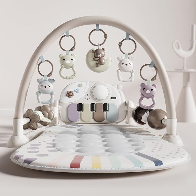 Baby Gym with Kick and Play Piano, Baby Play Mat Tummy Time Activity Gym Mat with 5 Infant Sensory, Music & Lights Boy or Girl for Newborn 0 to 3 6 9 12 Months